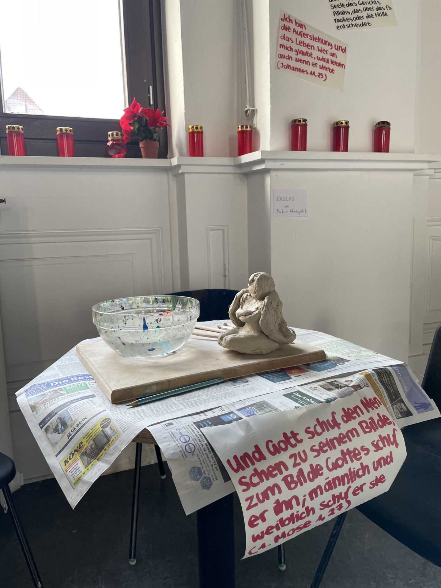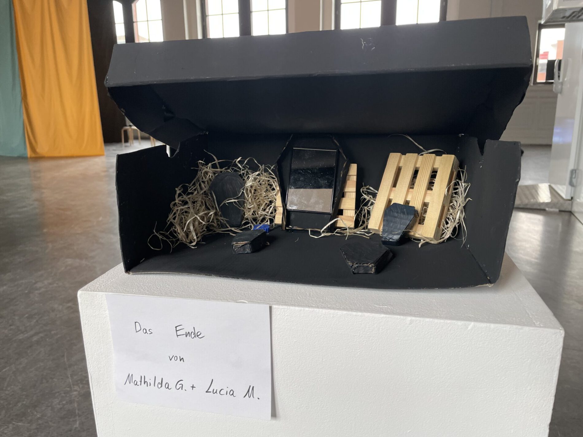 Pünktlich um 14 Uhr füllte sich der Kunstverein im Harburger Bahnhof anlässlich der Blitzausstellung des Kunstkurses der 10. Klasse mit Eltern, Großeltern, Mitschüler:innen, Kolleg:innen und Schulleitung. Im imposanten ehemaligen Wartesaal im Bahnhofsgebäude herrschte ein lebendiges Gewusel rund um die sehr ausdrucksstark kuratierten Schüler:innenarbeiten. In einer Performance wurde zum Töpfern eingeladen, Filme konnten angesehen werden, eine Bodenarbeit ließ die Besucher „stolpern“ und viele weitere, oftmals sehr persönliche Arbeiten, waren Anlass für interessierte Gespräche zwischen Besucher:innen und „Künstler:innen“. Die Idee der „Ästhetischen Forschung“ im Rahmen der KUNSTPIONIERE ist in der diesjährigen Konstellation auf sehr fruchtbaren Boden gefallen. Es war toll zu beobachten, mit welchem Engagement die eigenen Arbeiten entwickelt, umgesetzt und präsentiert wurden. Die Blitzausstellung vor vollem Haus war auf jeden Fall für alle eine positive Bestätigung des eigenen künstlerischen Wegs.