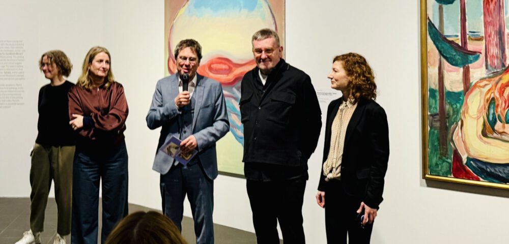 “Malfluss – Lebensfluss”, ein Dialog der renommierten Künstler:innen Maria Lassnig und Edvard Munch, startete für uns KUNSTPIONIERE der 12a aus der Stadtteilschule Blankenese mit einer großen Pressekonferenz. Dort sprach das gesamte Kuratinnenteam rund um Dr. Brigitte Kölle und wir erhielten eine sehr persönliche Führung durch das internationale Kuratorenteam. Alle vorher sorgsam formulierten Fragen für eine “klassische Pressekonferenz” wurden im Zuge dieser 90 minütigen Führung durch die Ausstellung schon tiefgründig beantwortet.