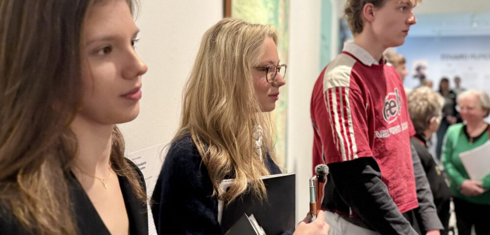 Wir erhielten sogar die Chance mit Dr. Johanna Hornauer zu sprechen. Sie ist Assestenzkuratorin der Ausstellung und beantwortete David, Jule und Leni noch weitere Fragen zur Hängung der Arbeiten.