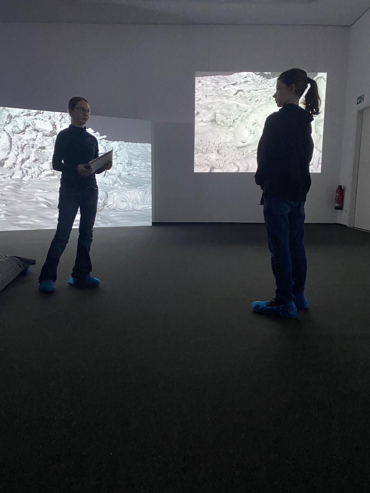 Schon im Foyer des Kunstvereins sammeln wir unsere ersten Eindrücke und stellen Vermutungen an über das, was uns hinter dem Vorhang erwartet.