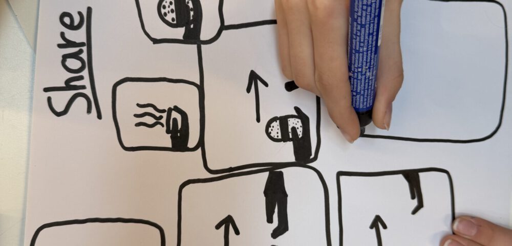 Wow! Wie vielfältig die Ideen sind, wenn die Ratlosigkeit erst überwunden ist. Wir experimentieren mit Ton, stellen Piktogramme her, arbeiten mit Pappmaché, malen und zeichnen.