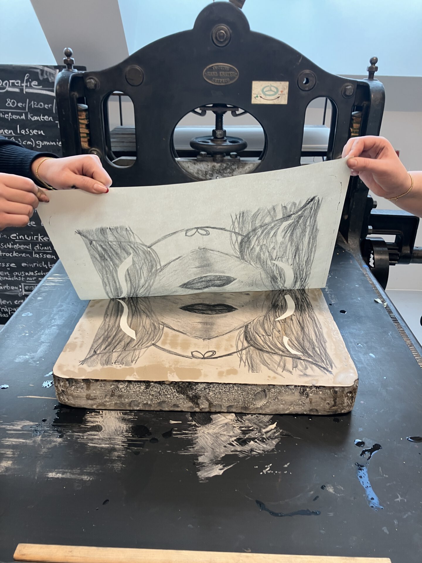 „Wo bleiben die anderen denn?“ Aufgeregt stehen die angehenden Erzieher:innen vor dem Museum der Arbeit. „Kommen die später noch rein? Die Künstlerin holt uns doch gleich ab!“ Ja, sie kamen noch ins Museum! Überhaupt bot das Museum uns sehr großen Freiraum zum Arbeiten. Die Schüler:innen konnten das Atelier, einen Arbeitsraum, Flur, Küche und das Gelände nutzen und jederzeit in die Ausstellung gehen. Für jedes (kleine) Problem wurde eine Lösung gefunden. Wir hatten die besondere Situation, dass wir im Rahmen des Projektunterrichts an fünf Tagen für jeweils fünf Stunden im Museum arbeiten konnten. Das war ein riesiger Vorteil, um nah an den Impulsen der Ausstellung „Respekt“ zu bleiben, die wunderbare professionelle Atmosphäre im Atelier und den Werkstätten aufzugreifen und durchgehend von der Künstlerin Muriel Zoe Borchert begleitet zu werden.